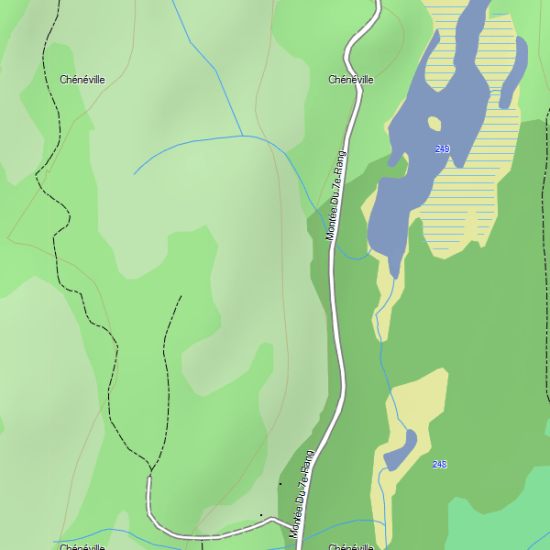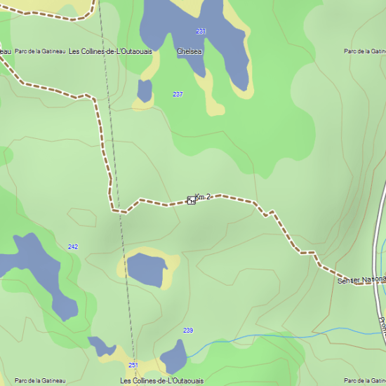 Obtenez de nombreux sentiers, sommets, cours d’eau, forêts et zones sauvages, parcs provinciaux, régionaux, ZECs, lignes électriques et voies ferrées ainsi que les routes primaires et secondaires.